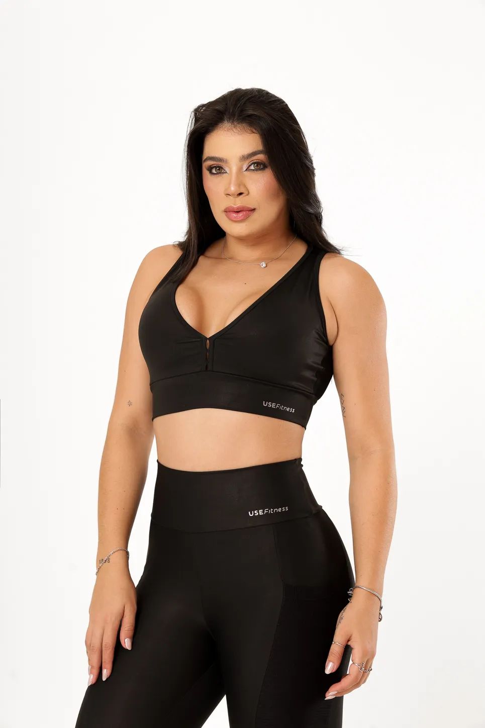Top com Bojo Nadador Acabamento em Dry - Cor Preto/Mescla